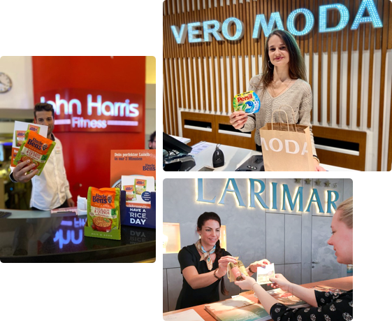 Unsere Kunden haben Produkte wie Sonnencremen, Getränke, Schokolade, etc. die sie Ihnen für Ihre Kunden oder Mitarbeiter schenken möchten. Wir knüpfen also Kooperationen zwischen unseren Kunden und Unternehmen wie Ihres.